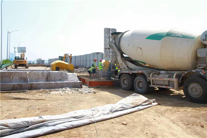 三門(mén)峽西收費(fèi)站筏板澆筑C40混凝土