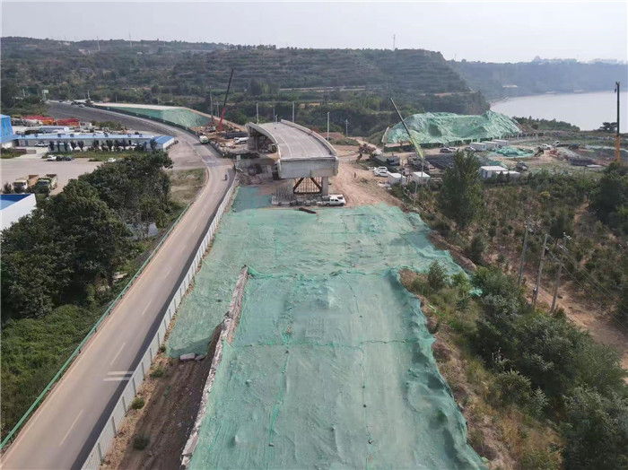 三門(mén)峽西收費(fèi)站拱形骨架施工中